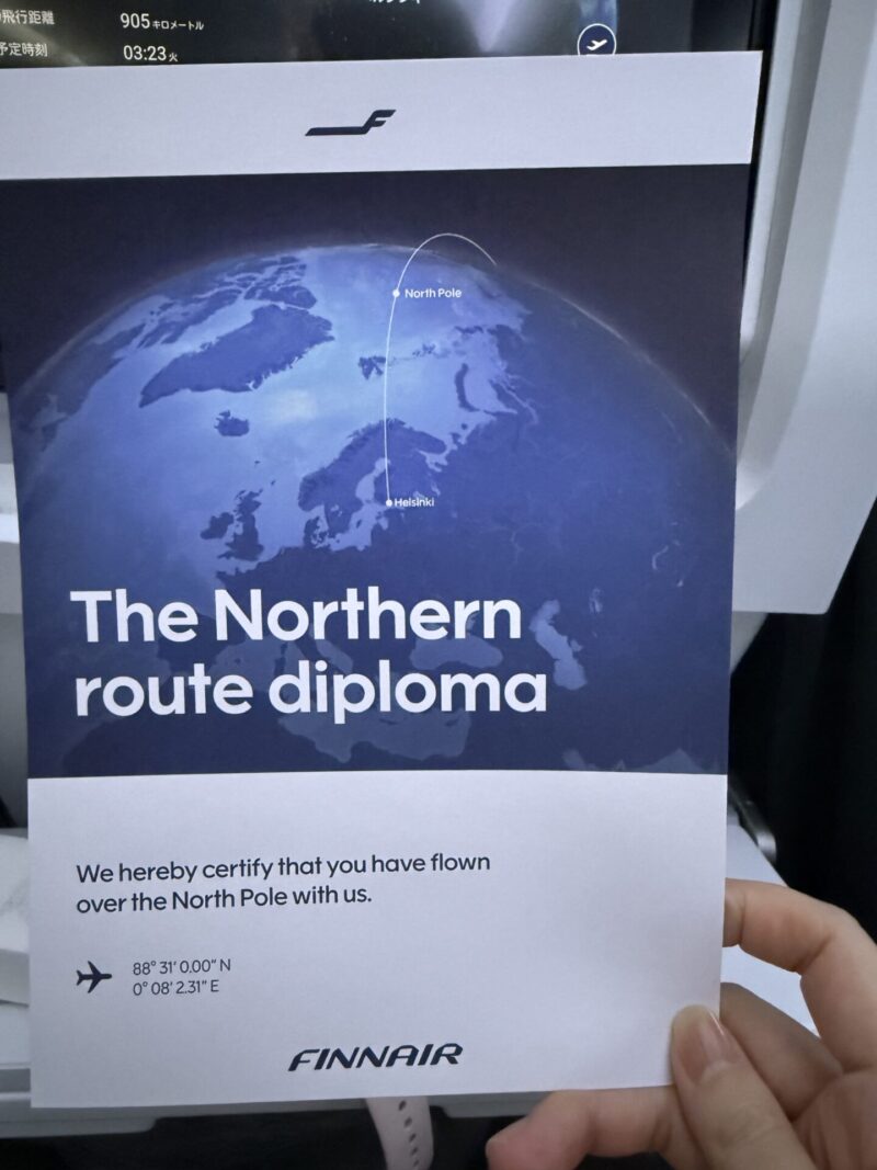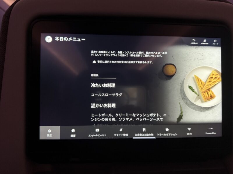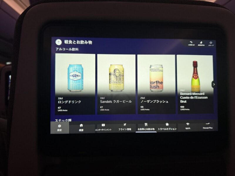 色々種類があるのに気が付かず、行きは赤ワインにしてしまいました。帰りに気がついて、ロングドリンクとノーザンブラッシュ頼んでみました。甘めでおいしかった。次フィンエアに乗ることあったら、何がお酒あるか調べないと・・・!