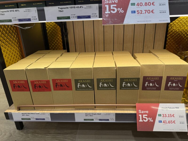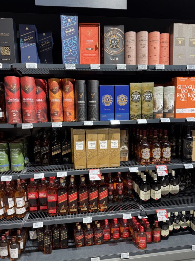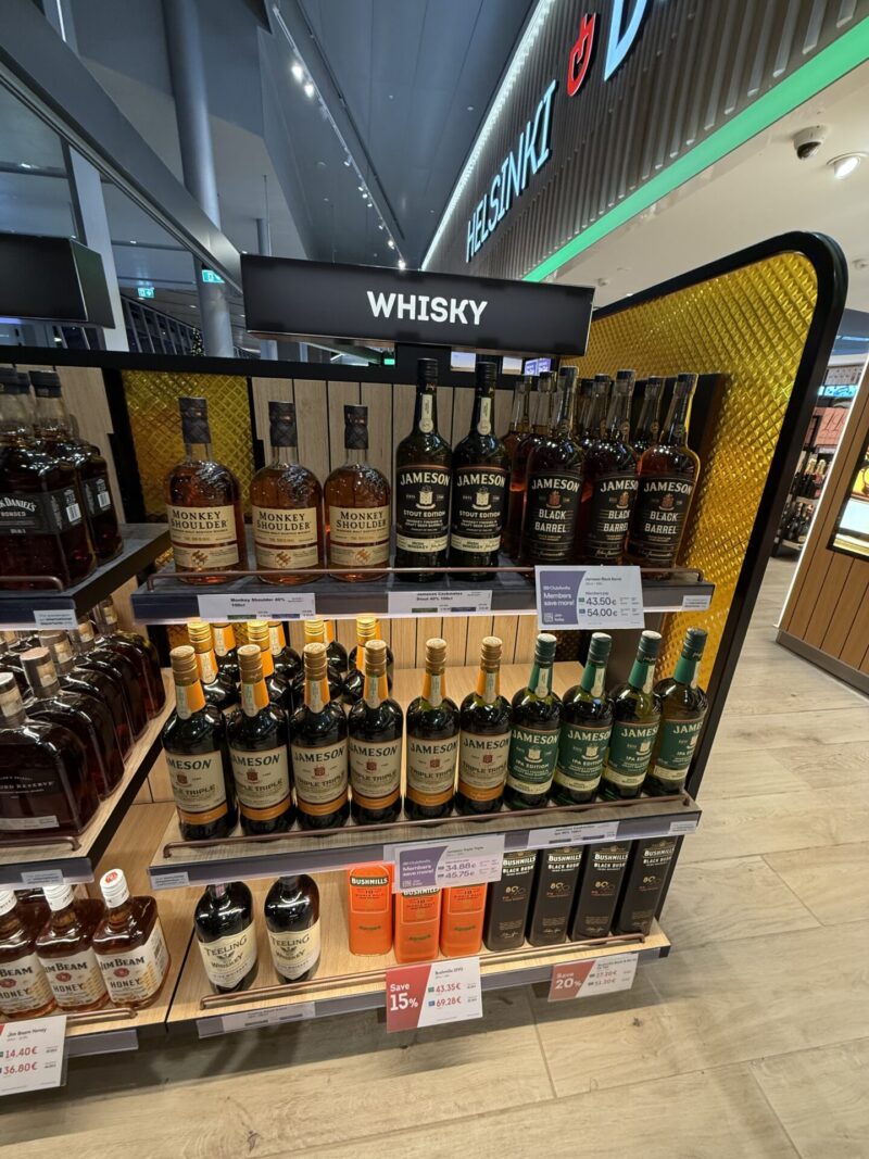興味ある人向けに、どういったウィスキーがあったか共有しておきます(24年12月中旬ごろのヘルシンキ空港のDutyFreeコーナー)