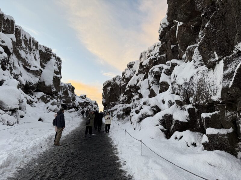 二日目はゴールデンサークルを観光。バスデイどうです。大地の裂け目ギャウ→間欠泉→グトルフォスの滝を回ります。